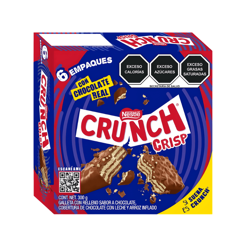 Disfruta el irresistible sabor de Crunch Crisp Nestlé, una deliciosa combinación de galleta crujiente con relleno sabor a chocolate, cubierta con chocolate con leche y arroz inflado. Cada mordida ofrece una textura ligera y crocante que encanta a los amantes del chocolate clásico Crunch.